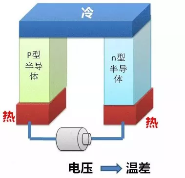 Når to forskjellige metaller danner en lukket krets og en likestrøm flyter gjennom kretsen, genereres en temperaturforskjell mellom de to kryssene.